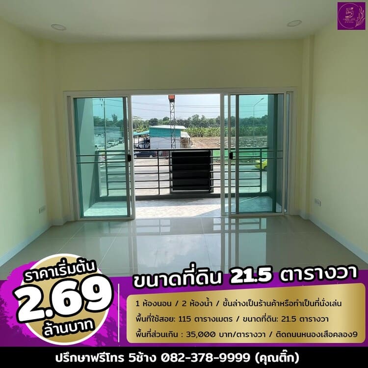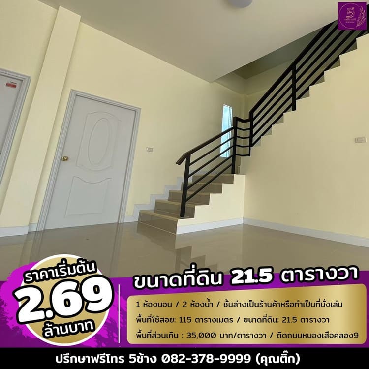 ขายทาวน์โฮม 2 ชั้น ติดถนนใหญ่หนองเสือคลอง 9 ปทุมธานี สนใจติดต่อ 0823789999