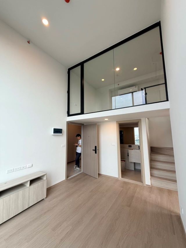 เนื้อที่ 46.90 ตร.ม. 2 ห้องนอน 1 ห้องน้ำ 1 ห้อรับแขก รูปแบบห้อง Duo Space 2 ชั้น