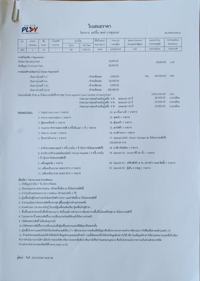 ขายดาวน์ 440,000 บาท ราคาหน้าสัญญา 4,670,000 บาทมีส่วนลดวันโอน 100,000 บาท