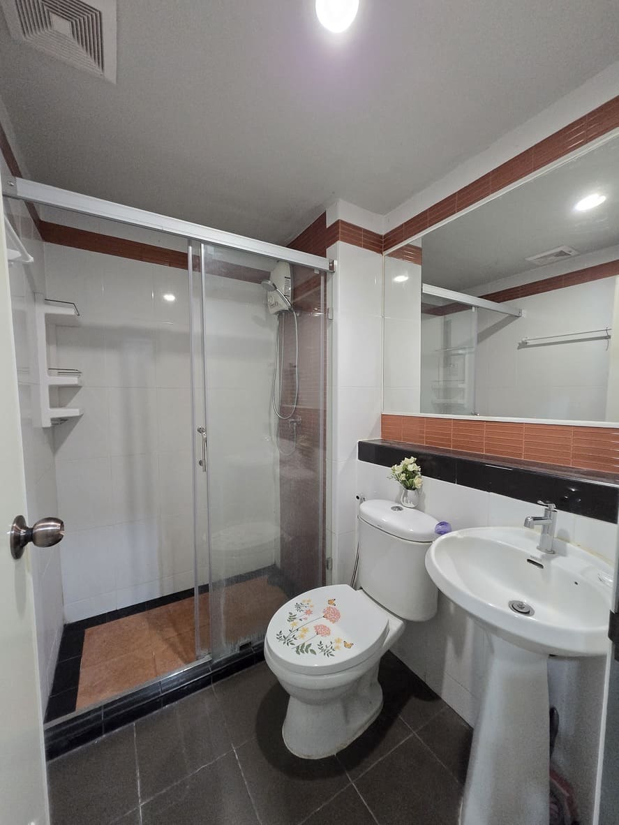 -ห้องน้ำกว้างมีกั้นกระจกอาบน้ำ