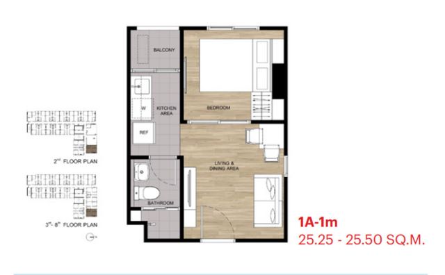 -เนื้อที่ 25.5 ตร.ม ชั้น 5 1 Bedroom ห้องมุม