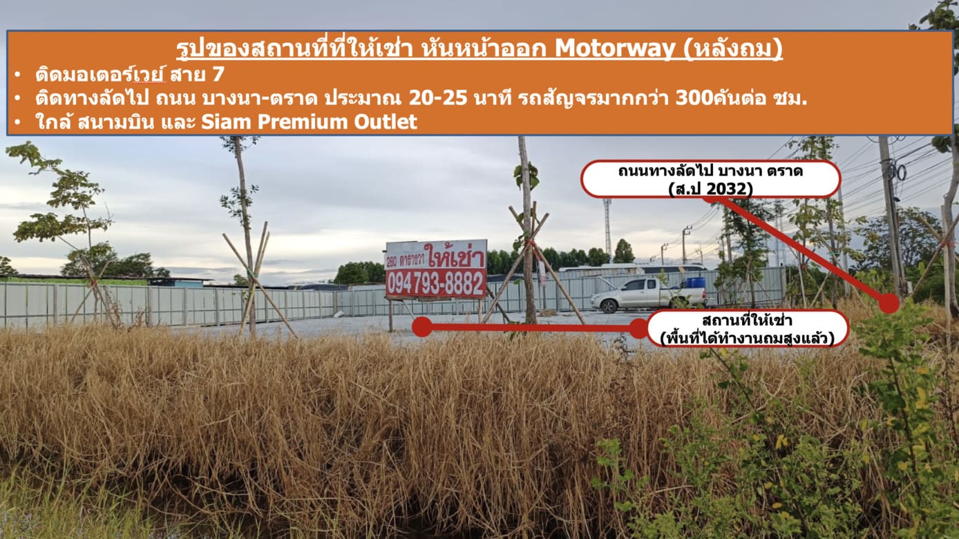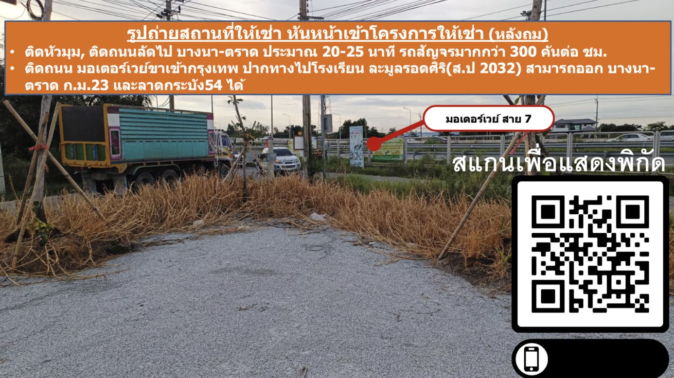 แปลงนี้ติดถนน มอเตอร์เวย์ขาเข้ากรุงเทพ ปากทางไปโรงเรียน ละมูลรอดศิริ(ส.ป 2032) สามารถออก บางนา-ตราด ก.ม.23 และลาดกระบัง54 ได้