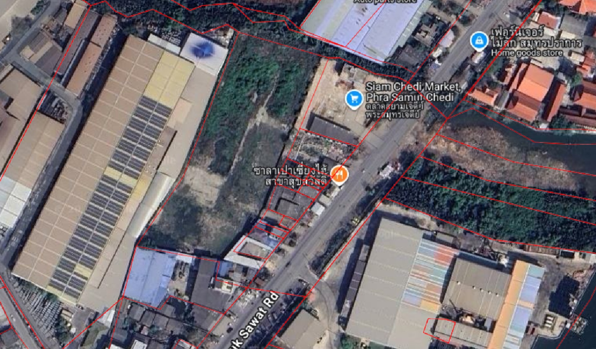 ขายที่ดินพร้อมอาคาร 6-3-38 ไร่ ติด ถ.สุขสวัสดิ์ เยื่องกับวัดไตรมิตรวราราม สมุทรปราการ