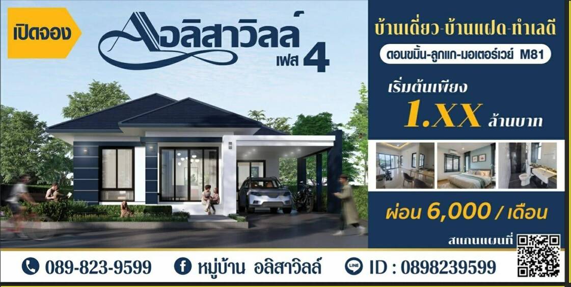 เปิดจองแล้ว อลิสาวิลล์ เฟส 4 (Alisa Ville Phase 4) กาญจนบุรี บ้านเด่นทำเลดี ติดถนนใหญ่ เดินทางสะดวก