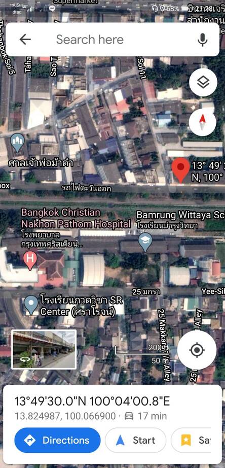 ติดถนนริมทางรถไฟตะวันออก ตรงกับหลัง รร.บำรุง ห่างองค์พระ 900เมตร รถวิ่งผ่านหน้าบ้านเยอะ ทำการค้าได้