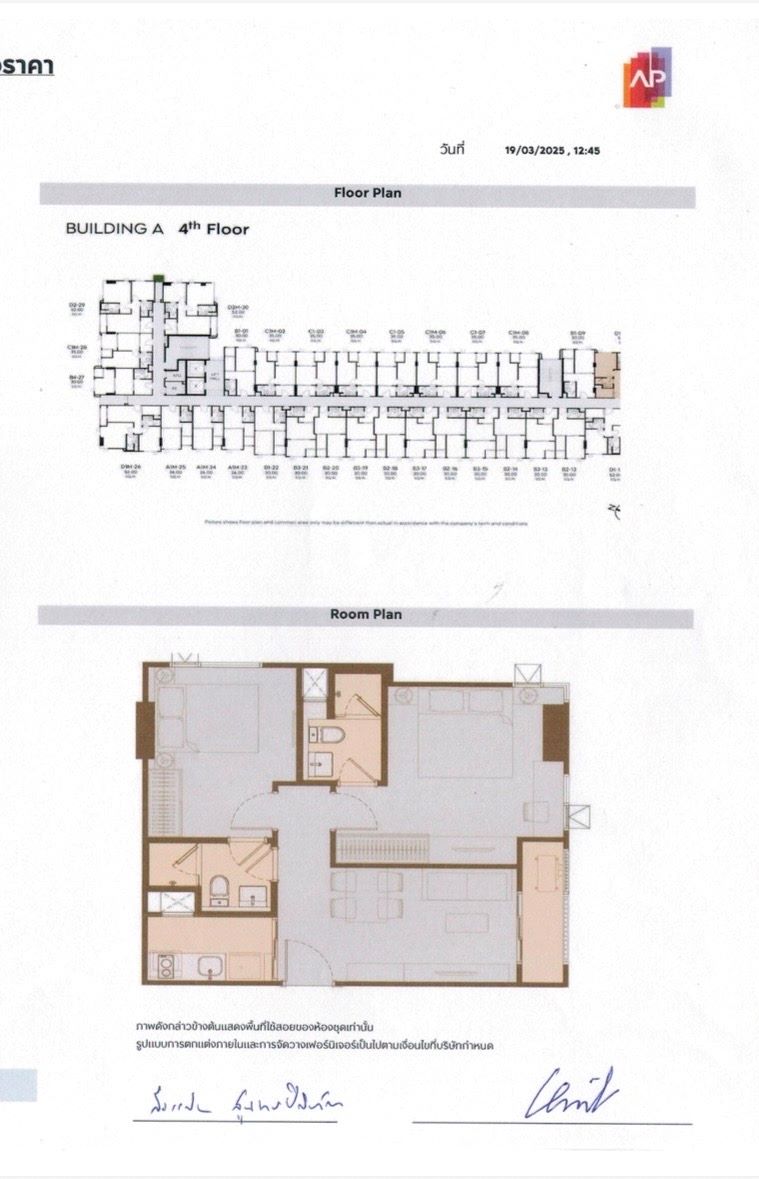 ตำแหน่งห้องชุด A4DM10 เนื้อที่ 52 ตร.ม. 2 ห้องนอน 2 ห้องน้ำ 1 ห้องรับแขก ชั้น 4 ตึก A ฟรี Digital Door Lock