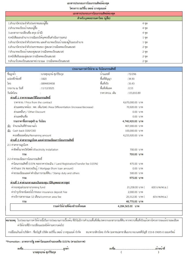 รายละเอียดค่าใช้จ่ายวันโอน ดูได้จากรูปแนบครับ