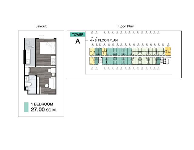 1 Bedroom เนื้อที่ 27.63 ตร.ม ชั้น 6 ตึก A
