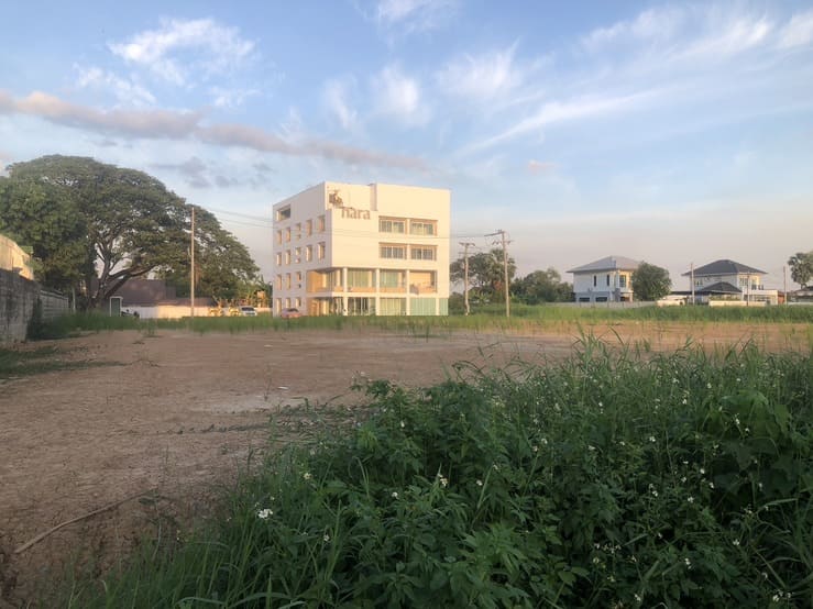 ที่ดินติดถนนราษฎร์อุทิศ 9 ทางเข้าร้านชาบูดีไล้ย์ ถนนทางเข้าที่กว้าง 8 เมตร หลังหมู่บ้านศุภาลัย